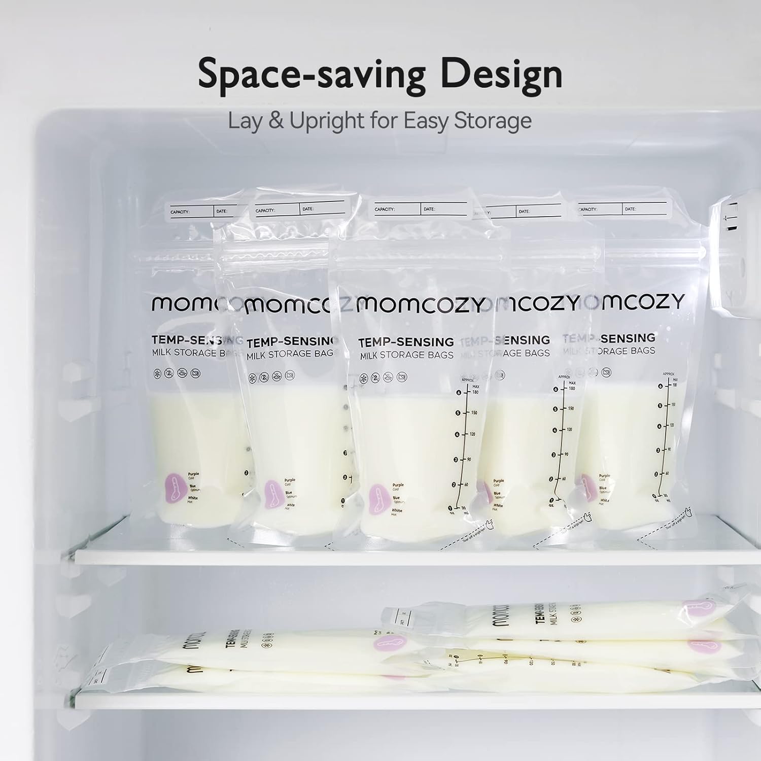 Çantat për ruajtjen e qumështit Momcozy janë krijuar për të ofruar siguri dhe prakticitet në ruajtjen e qumështit të gjirit. Ato janë të parapastruara, pa BPA dhe të pajisura me mbyllje të dyfishtë për të parandaluar rrjedhjet. Me kapacitet prej 6 oz / 180 ml, këto çanta janë të përshtatshme për ruajtje në frigorifer apo ngrirës, duke mbajtur freskinë dhe cilësinë e qumështit.